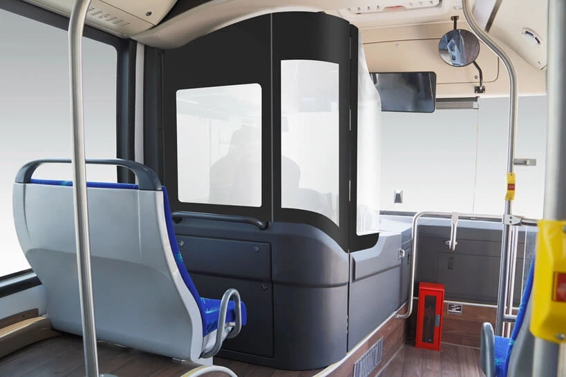 EN BEDRE ARBEIDSPLASS FOR FØRERESjåførene får en hyggelig arbeidsplass i Pivot E18. For å gi bedre sikt for sjåføren, har vi optimalisert sittestillingen. Det uavhengige dashbordet samsvarer ikke bare med ergonomisk design, men kan også justeres i henhold til førerne. Du finner mye lagringsplass og knappene på dashbordet er lett tilgjengelige. Den nye beskyttelsesdøren skjermer sjåføren mot distraksjoner og lar ham fokusere på bussdriften. |