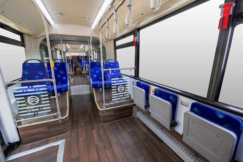 INNVENDIG KOMFORTDet sjenerøse interiøret formidler en følelse av komfort. Med kapasitet på inntil 120 passasjer gir Pivot E18 innvendig rom enten om du sitter eller står. De store panoramavinduene gir godt utsyn. Lav terskel i hele bussen og fasiliteter for rullestolbrukere og personer med begrenset mobilitet, sikrer enkel ombordstigning og opphold. |